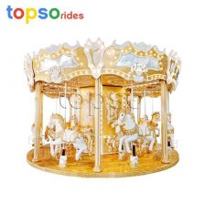 Carousel Ride is a popular classic amusement park ride. Also named Merry Go Round. The appearance is novel, and color is gorgeous, is one of the best choice for young people to ride. The carousel is a traditional amusement machine. When riding on it,kids will be moved up and down uniformly as well as spinning. Passengers sit on the horse with ups and downs, just like riding a real horse running on the grassland. At night, it has gorgeous and brilliant lights open to attract more people’s eyes.
