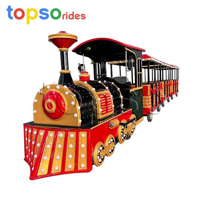 Tourist Train Ride, also known as the “electric trackless train”, consists of 1 locomotive and 3 cabins, can accommodate 27 persons.It is a new type of train amusement rides, The height of the cabin is more suitable for adults and is widely used for outdoor sightseeing.