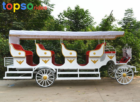 The sightseeing horse carriage can accommodate more tourists than other horse carts. At the same time, the horse carriage is not covered around and visitors can enjoy the scenery 360°.It is widely used in various large parks, large clubs, golf courses, etc.