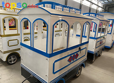 Fiberglass trackless train is a popular amusement product of our company. Thanks to the plasticity of FRP materials, our company has many trackless trains with different shapes and colors. At the same time, we also accept customer customization.