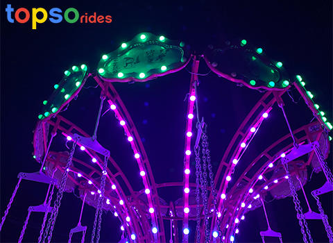 The style is simple, and the lighting is gorgeous.On the basis of the rotation of the flying chair rides, the lifting function is added to improve the running height, so that kids can feel more exciting flying experience. The rotation speed can also be adjusted.