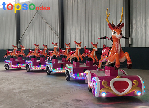 The deer train rides is an upgraded version of the kids pony train rides, with a more cute look and bright colors.It has a 360-degree viewing angle and colorful lights. The kids rides on the deer, and as the team move on, the seat swings back and forth, bringing the kids an unparalleled play experience.