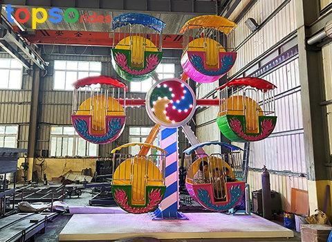 Small ferris wheel ride is very modern and popular rides in amusement park and playgrounds. The can rotate 360 degrees around the horizontal axis in the circular orbit for vertical movement which thrills as if through time any space. Mini Ferris wheel, the children’s favorite. Experience to bring you the highest point of the stimulus, feel the heart of the shock; lead your child towards happiness ladder.