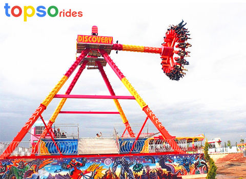 Top drive big pendulum rides is a kind of large scale amusement facilities. The equipment is modeling beautiful .When the guest seat in high speed rotary pendulum swings, they will be in reciprocating, dazzing, thrilling feeling. Tourists often can’t help out with laughter exclaimed, which greatly improve the playground atmosphere, Many tourists linger here and don’t want to leave. Sitting on the pendulum, the tourists have a strong centrifugal feeling. During the equipment’s operation, the visitors can experience 1~2 seconds weightlessness, just like astronauts in Space.