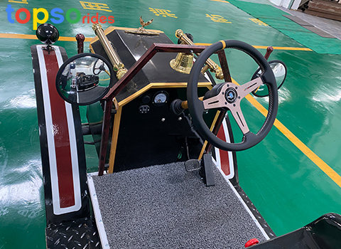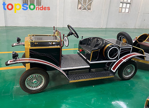 The vintage trackless train is a new design, which is more suitable for adults, or one adult with one child. The locomotive is a mini vintage car. The carriage is open and can accommodate two passengers at the same time. The passengers lean on the chairs and have a wide view.The vintage trackless train consists of a locomotive and four carriages, which can accommodate 8 passengers.